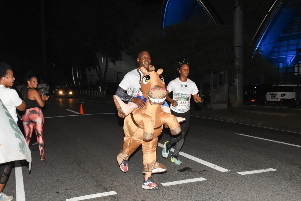 The coffee shop delighted participants with appearances from both the Grinch and Santa, the crowd had to look up as Moko Jumbies did their thing, while the rhythm section matched the runners stride for stride with their beats.