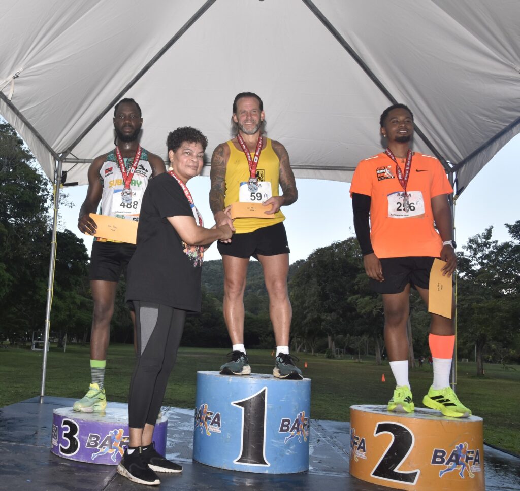 Dirk Eichberger, representing FC Erlenbach and hailing all the way from Germany, clocked in at 20:58 to top the men’s division, followed by Jean-Luc Worrell (Just Run Na) second in 21:14, and Tobagonian Renoki Abbott (PPF) in 21:21.5 to wrap up third place.