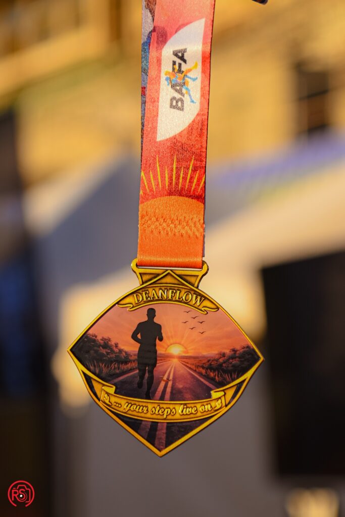 In memory of Deanflow. Runners were treated to a custom-made medal as part of the homage paid at the Deanflow Remembrance 5K in Marabella on Sunday. Image: Bafasports Media.